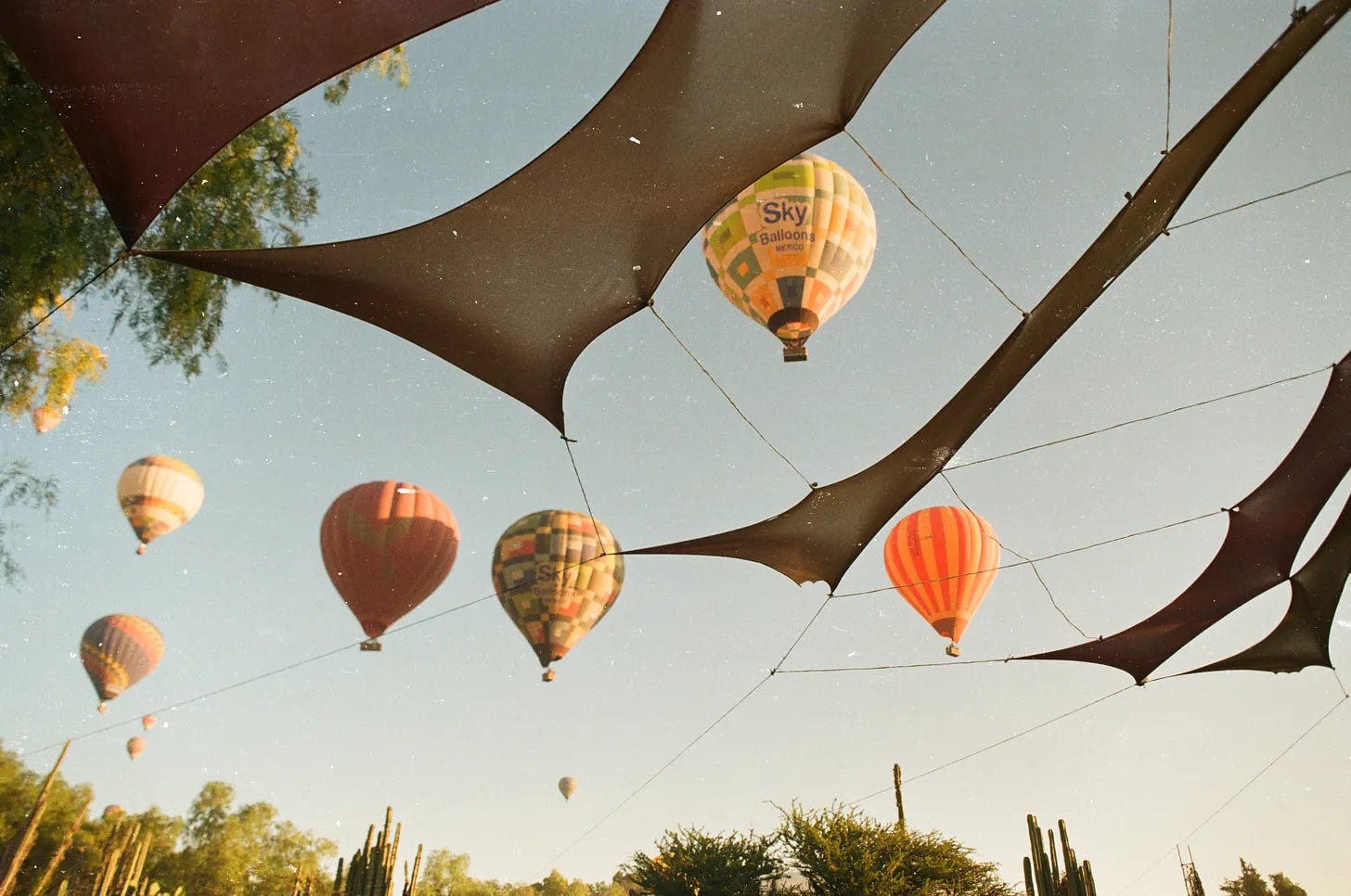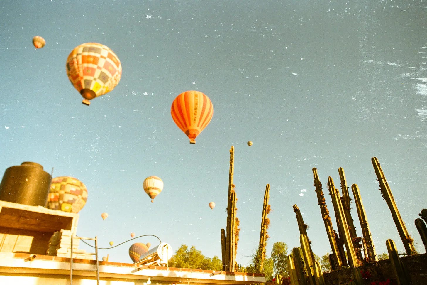 “Over there!” someone pointed, and the rest of us turned and saw a colorful balloon with a basket and people inside it emerge from the fog above the horizon. And behind it, another and another. They flew high, yet close enough that we could see the faces of the people waving at us from the ground. What did they think we were? Some bunch of loonies wrapped in blankets camping in the middle of the desert? But they smiled friendly and called out to us, and we called back.