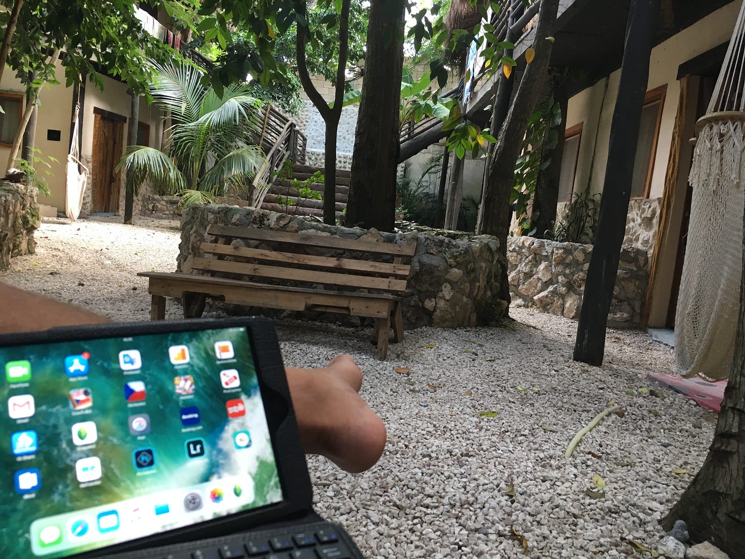 Další dny skoro neměly chybu. Měl jsem možnost dospat spánkový deficit, nechal jsem si vyprat všechno oblečení a každé ráno si dopřával horkou sprchu. Ke snídani jsem si servíroval velkou mísu ovoce a misku cereálií, které tu každé ráno čekaly pod palapou. Zapil jsem to hrnkem černé kávy, která by mohla být lepší, ale i horší, a další hrnek si s sebou vzal na dvorek mezi stromy. Tam jsem se usadil na lavičce a pracoval na svých textech.