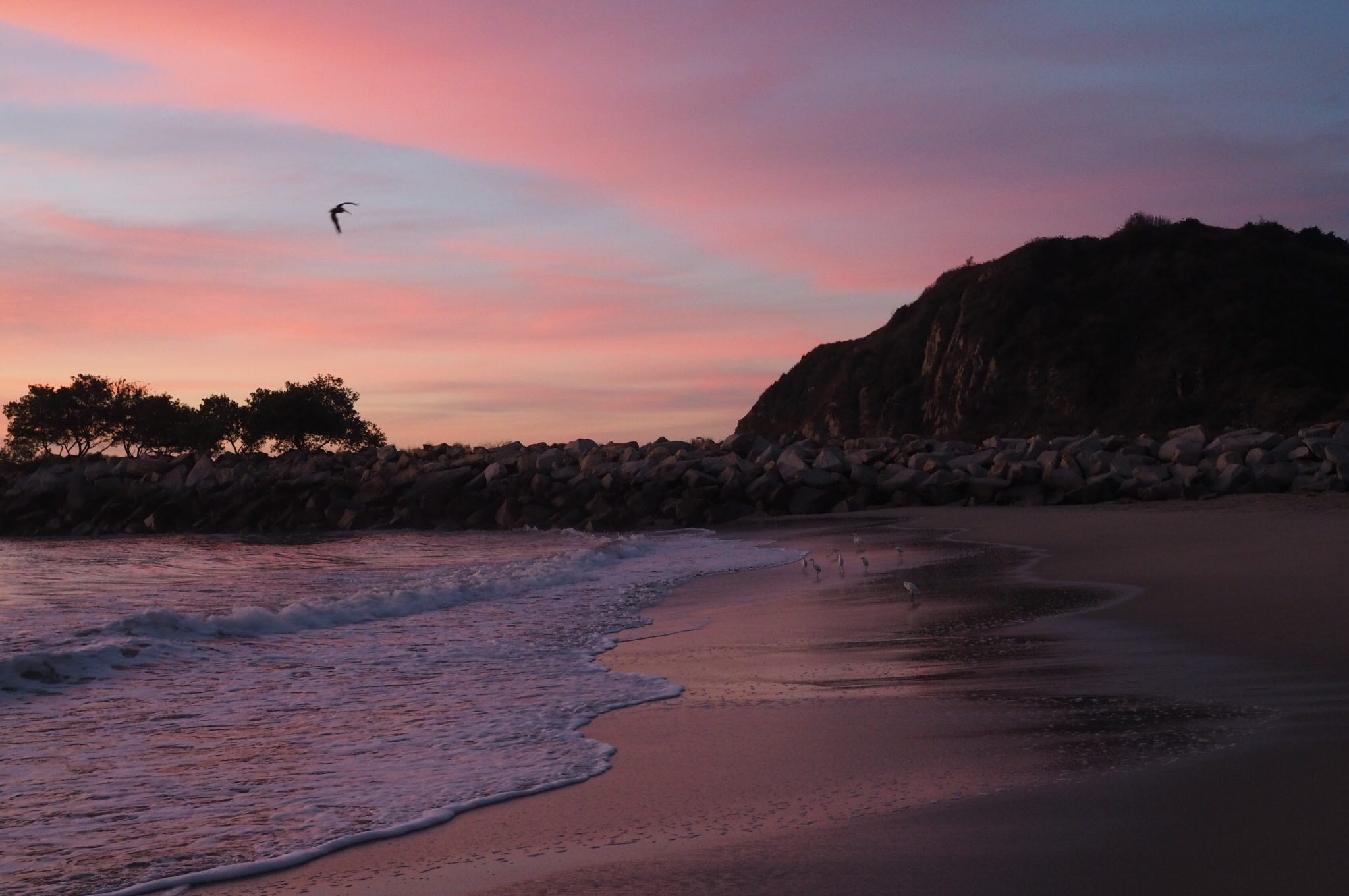 panenská pláž při soutoku sladkovodní laguny s Tichým oceánem